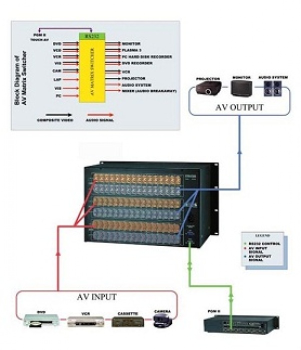| 20 | MATRIX AV9632 | 96 | 32 | Złącza video BNC, Audio terminal blocks |
