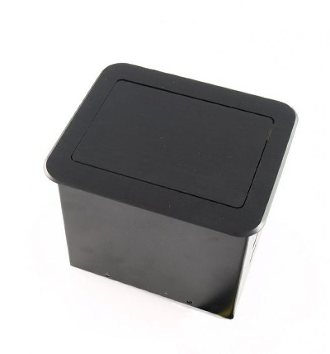 Montażowa puszka przyłączeniowa z wbudowanym gniazdem zasilającym. Pokrywa i kołnierz wykonane z aluminium. Kolor czarny lub srebrnym. Pokrywa wsuwana w w obudowę . Przyłącze wyposażone w zestaw kabli który opcjonalnie można wymienić lub uzupełnić.
