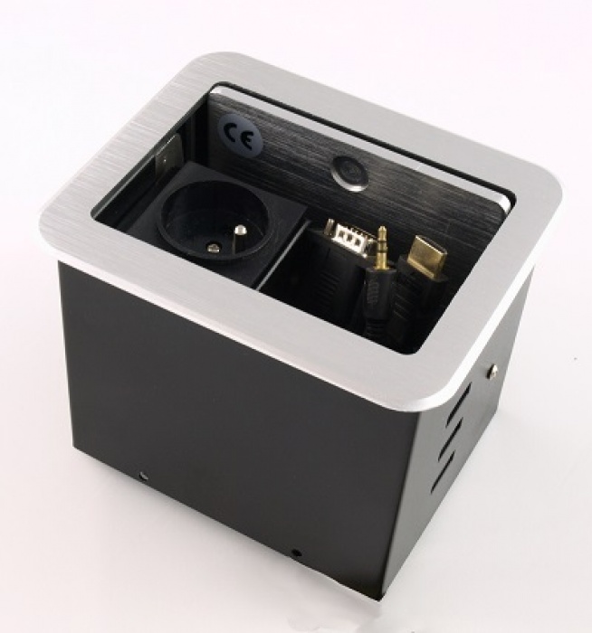 Przyłącze stołowe AV - SBOX to łatwe w montażu przyłącze z otwieraną klapką i wsuwaną w obudowę to idealne rozwiązanie wszędzie tam gdzie wymagana jest wysoka estetyka, uniwersalność i niezawodność. Dzięki możliwości adaptacji praktycznie każdych przedłużaczy kablowych przyłącze AV-SBOX może być użyte przy wszystkich instalacjach bez względu na rodzaj obsługiwanych urządzeń.
