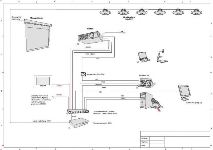 W przypadku złożonych i kompleksowych zleceń, takich jak wyposażenie sali wykładowej lub konferencyjnej, wykonujemy projekty techniczne instalowanych systemów audiowizualnych. Nasi specjaliści zaaranżują optymalnie każde pomieszczenie, które służyć ma celom założonym przez inwestora, dobierając odpowiednie urządzenia: